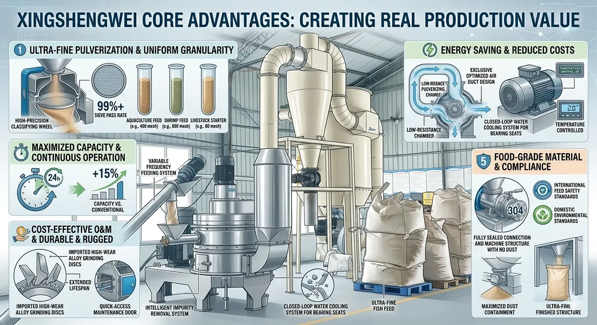 إذا كنت تعمل في صناعة معالجة الأعلاف، فيجب أن تكون على دراية جيدة بمشكلات مثل حجم جزيئات المسحوق غير المتساوي، والخسارة الكبيرة في المواد الخام، والتوقف المتكرر للمعدات، والتي لا تقلل هوامش الربح فحسب، بل تؤثر أيضًا بشكل مباشر على جودة العلف النهائي. باعتبارها شركة رائدة في تصنيع معدات تكسير المسحوق لسنوات عديدة، فقد كرست شركة Xingshengwei جهودها لتطوير آلة الطحن فائقة الدقة للتغذية المبثوقة، والتي تم تصميمها خصيصًا لمعالجة نقاط الألم في الصناعة. تم تصنيع الماكينة بدقة، وقوية، ومتينة، ومصممة خصيصًا لخطوط إنتاج الأعلاف المنتفخة. يمكنها تحسين كفاءة الإنتاج بشكل كبير وتقليل تكاليف التشغيل والصيانة للدورة الكاملة، وتحقيق حجم جسيمات موحد ومستقر لكل دفعة من التكسير، ومساعدة مصانع الأعلاف على تحسين الجودة والكفاءة.