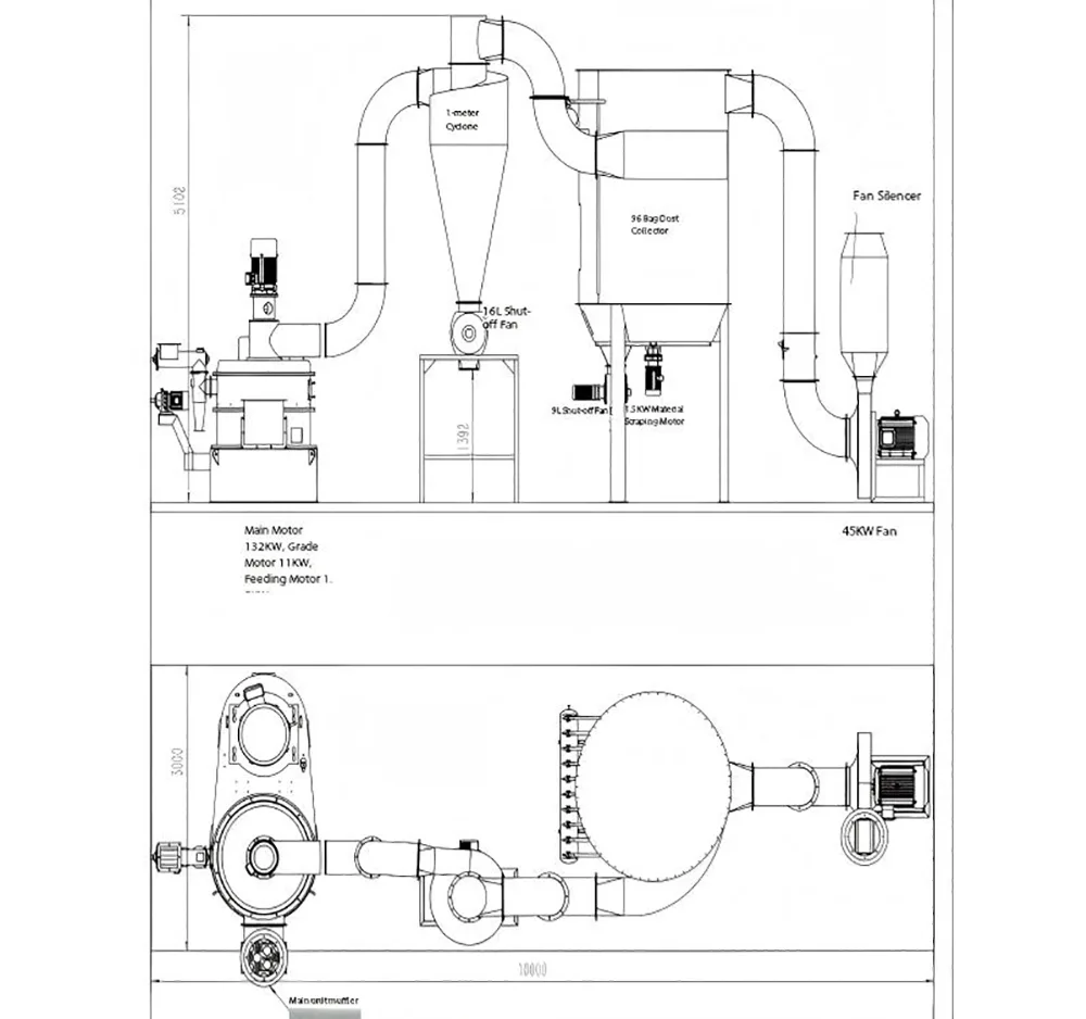 يتكون مضيف الطحن متناهية الصغر من نظام التغذية، ونظام الطحن، ونظام الدرجات. يتم الانتهاء من سحق وتصنيف المواد في نفس الغرفة.